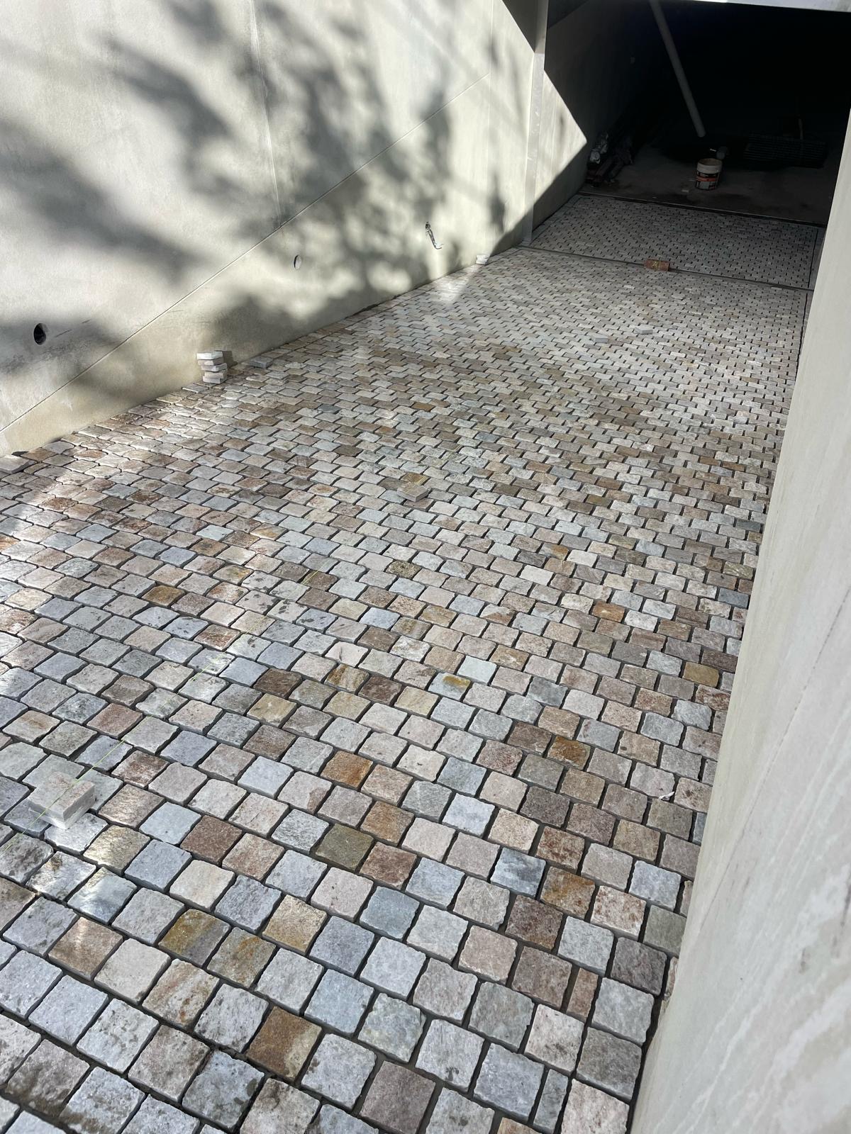 Noosah Cobblestones – these cobbles combine lasting strength with natural beauty. Their mix of grey, beige, and cream tones complements travertine and sandstone, adding timeless style to any outdoor space. Perfect for high-traffic areas, they offer both elegance and resilience for years to come.